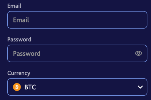 Select a secure password, choose your preferred currency, and enter a valid email address.