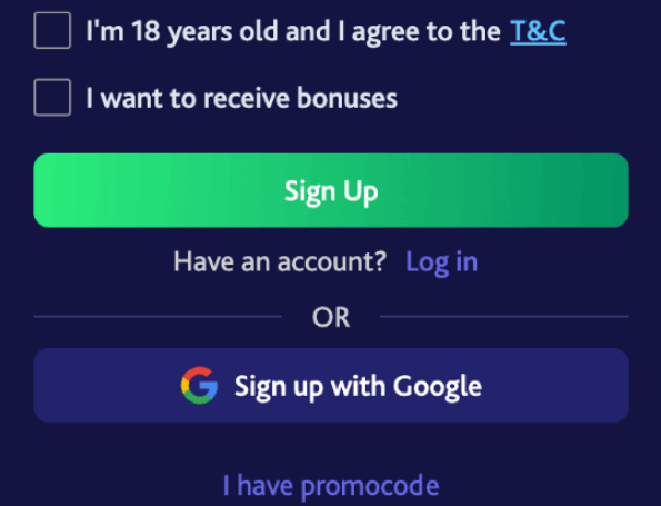Begin by clicking the “Sign Up” button.